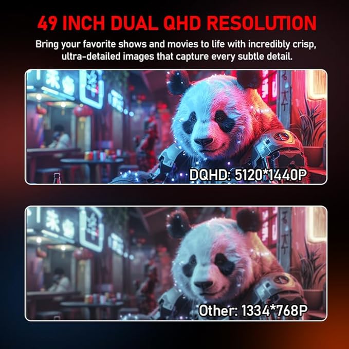 - Ultra-Wide Curved Display for Immersive Viewing - Experience panoramic visuals on a 49 inch 1500R curved screen with 5120x1440 resolution. The 32:9 aspect ratio eliminates bezel distractions, perfect for multitasking, gaming, or streaming. VA panel technology delivers 3000:1 contrast and 250cd/m² brightness, enhancing HDR10 content for vibrant colors and sharp details.