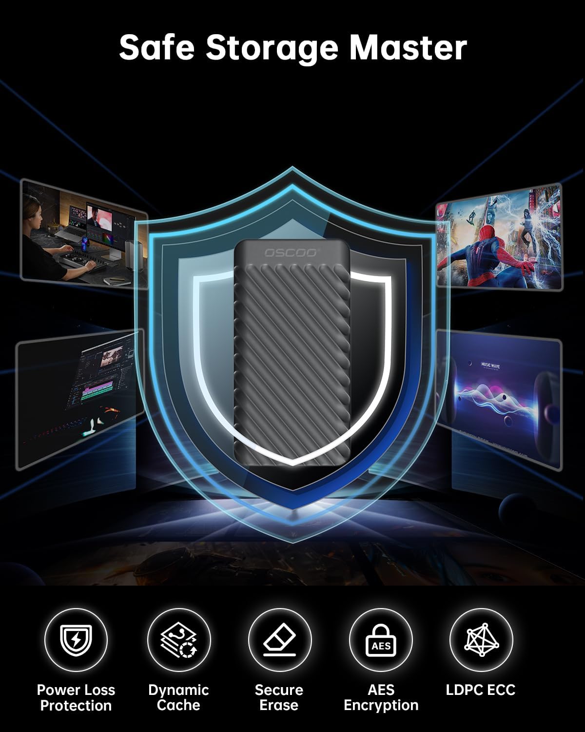 - Built for Creators: Capture, edit, and transfer with ease. Powered by SSD technology and premium NAND Flash, this portable SSD delivers up to 2000MB/sâperfect for handling large 4K videos, RAW photos, and gaming assets. Maximum speed can reach 10Gbps with USB-A, please make sure your device's interface USB 3.1 Gen 2x2 / USB 3.2 Gen 2