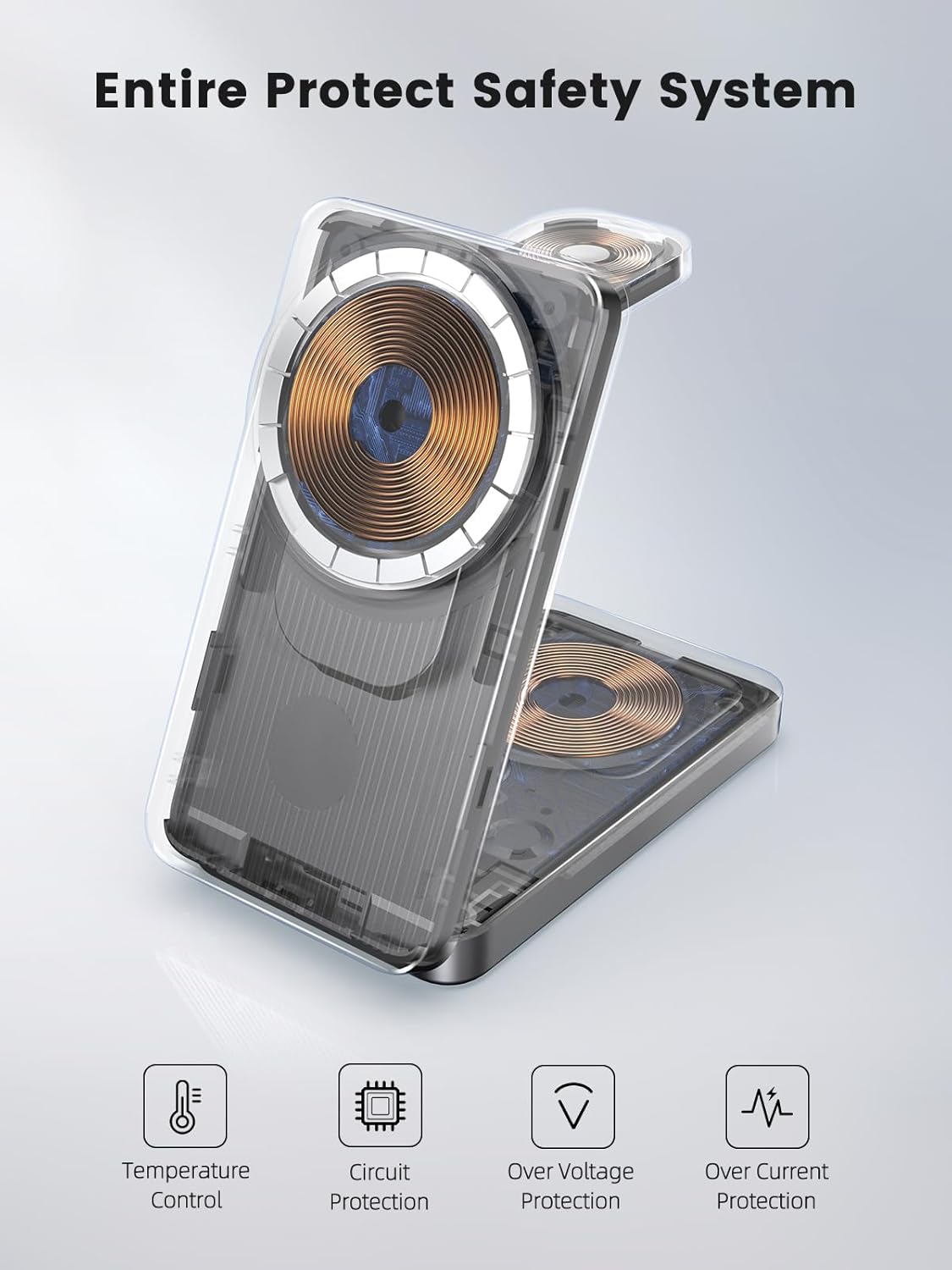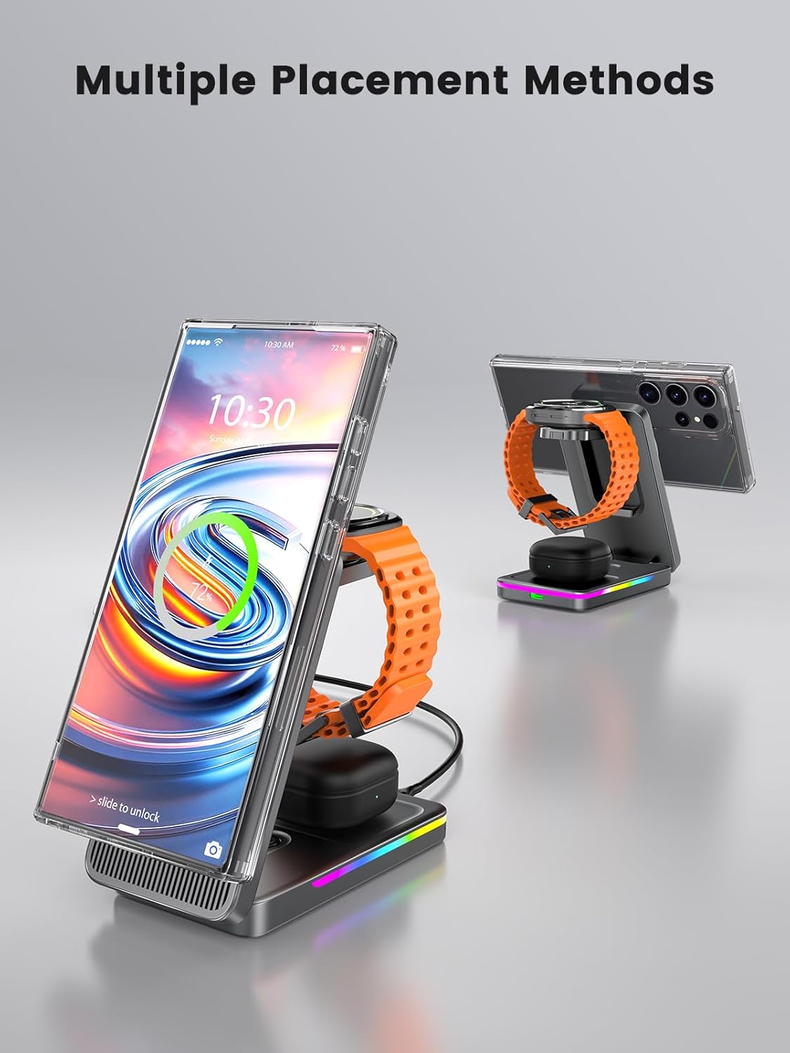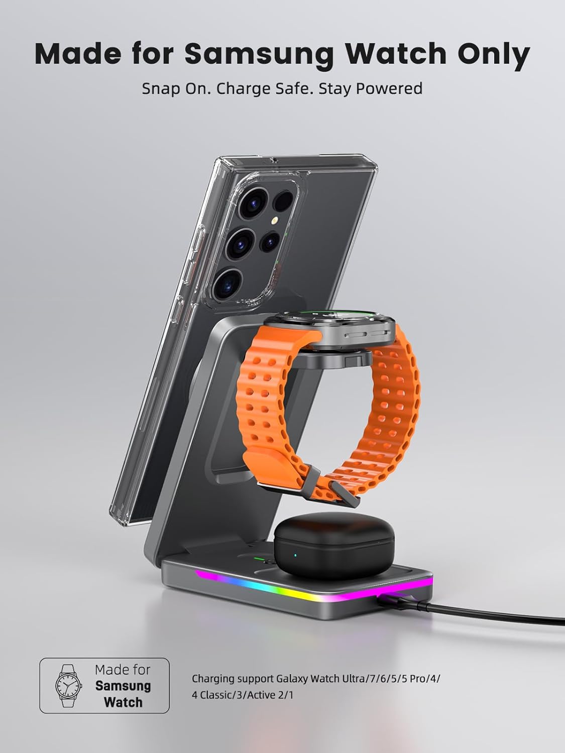- Compatibility - Designed for the latest Z Fold7/Flip7. Samsung S Series/Note Series/Z Flip Series (Requires Magsafe case/ring), iPhone 16/15/14/13/12 Series and Specifically work for Galaxy Watch8/Ultra/7/6/6 Classic/5/5 Pro/4/4 Classic/3 and Active 1/2. Not compatible with other watch models. Also works with Galaxy Buds/Pro/Live and earbuds with wireless charging cases