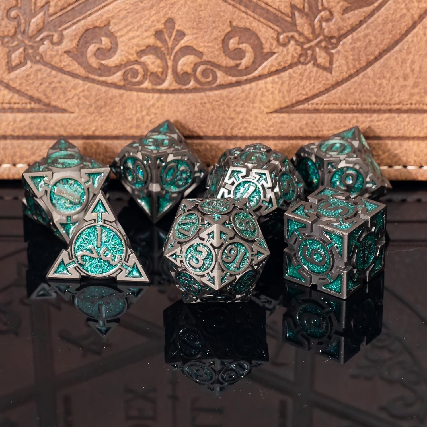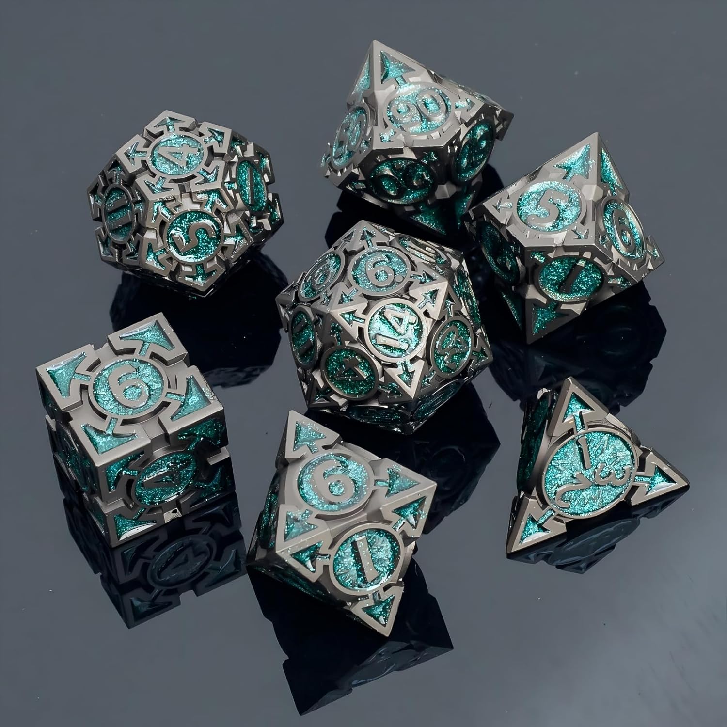 - Complete 7-Piece Metal DND Dice Set – Includes D4, D6, D8, D10, D12, D20, and D% dice, each crafted with sharp edges and extra weight for a premium feel. Perfect for tabletop RPG enthusiasts.
