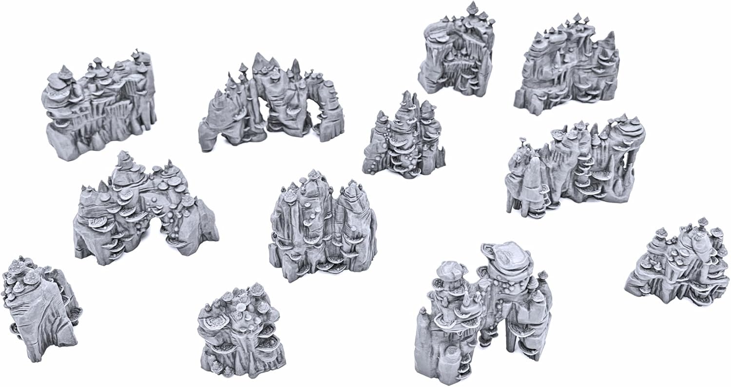 - Great value! Set includes 12 rock wall segments with fungal growths.