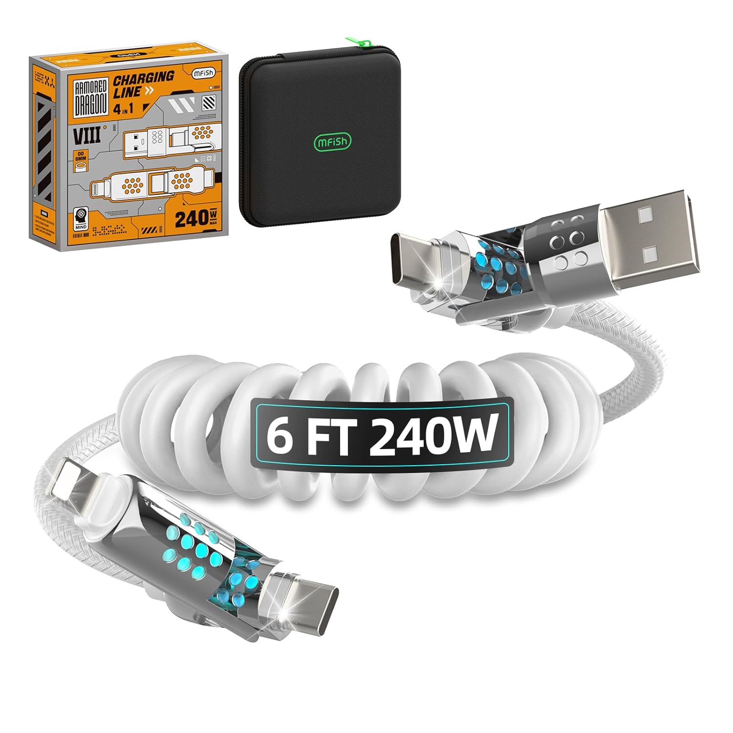 MFish 4-in-1 USB C Charging Cable, 6 Ft Type C to Type C Cable, 240W Fast Charger for iPhone 16/15/14 Pro Plus Pro Max, for iPad MacBook Pro/Air, Laptops - Multi Charger Cord with USB-A
