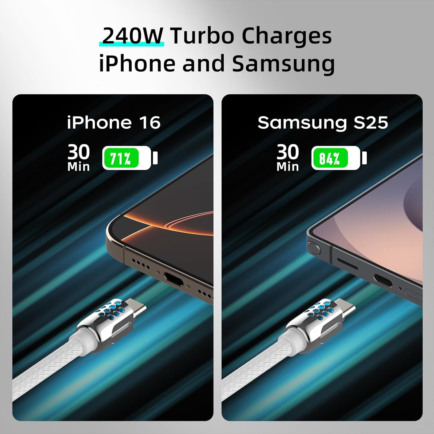 - Gamer-Approved RGB Glow: RGB color-shifting lights (blue/red/green/purple) pulse softly in the dark—find your cable instantly at night or add a gaming vibe to your setup. Gentle glow won’t disrupt sleep