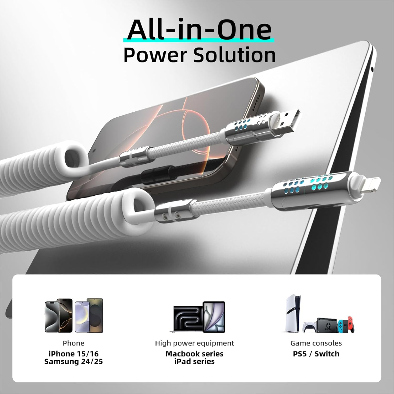 - MFish 4-in-1 Charging Cable: Universal Compatibility for iPhone 16/15,for Google Pixel 6/6 Pro/5/5a, for Galaxy S24/S23/S22/S21/S20/S20+/S20 Ultra, A53/A73/A71, Note 10/10+/20 Ultra, for Switch, for PS5 and other USB-C port devices, for iPads, MacBooks—one cable replaces four. Perfect for travelers, gamers, and multi-device households. Compatible with 65W/61W/45W/35W/30W/25W/20W USB C charger