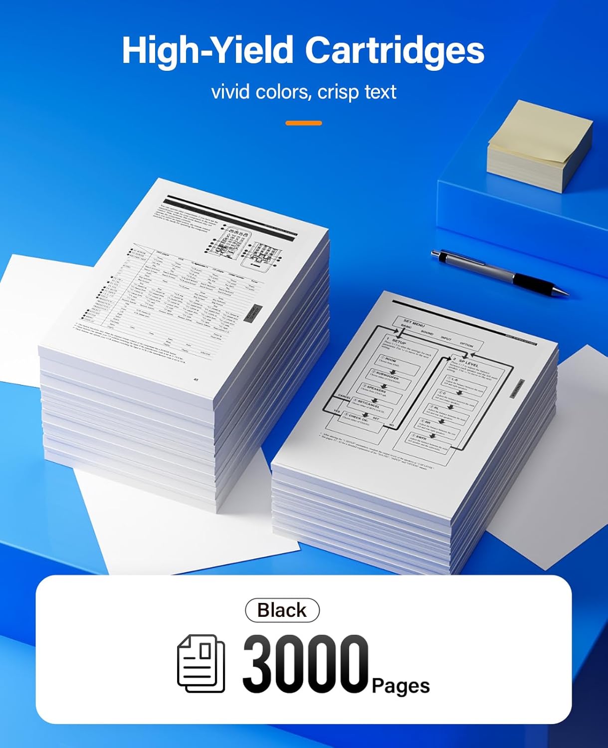 - 【Page Yield】Up to Black is 3,000 pages per black Toner Cartridge (Letter/A4, at 5% Coverage).