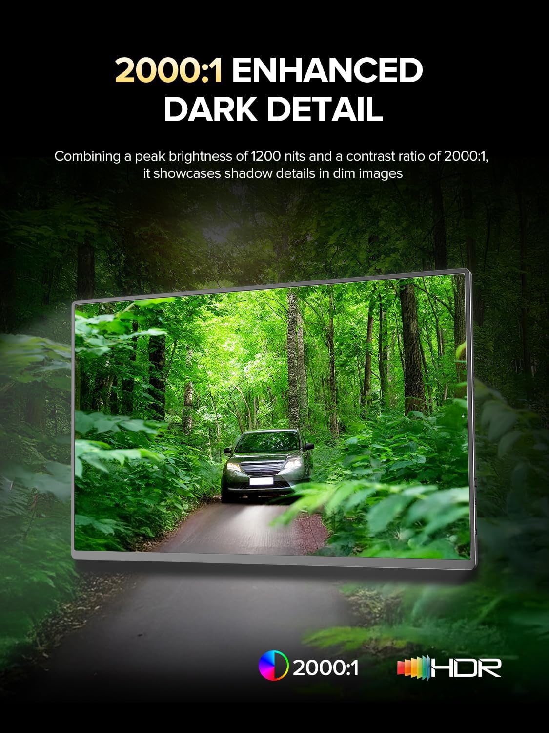 - 2000:1 High Contrast Ratio: White is 2000 times brighter than the darkest black, and this portable screen turns every scene into a dramatic visual masterpiece. Shadows reveal hidden details, highlights burst with luminous intensity, and colors gain unparalleled dimensions, immersing oneself in more realistic, rich, and lifelike images
