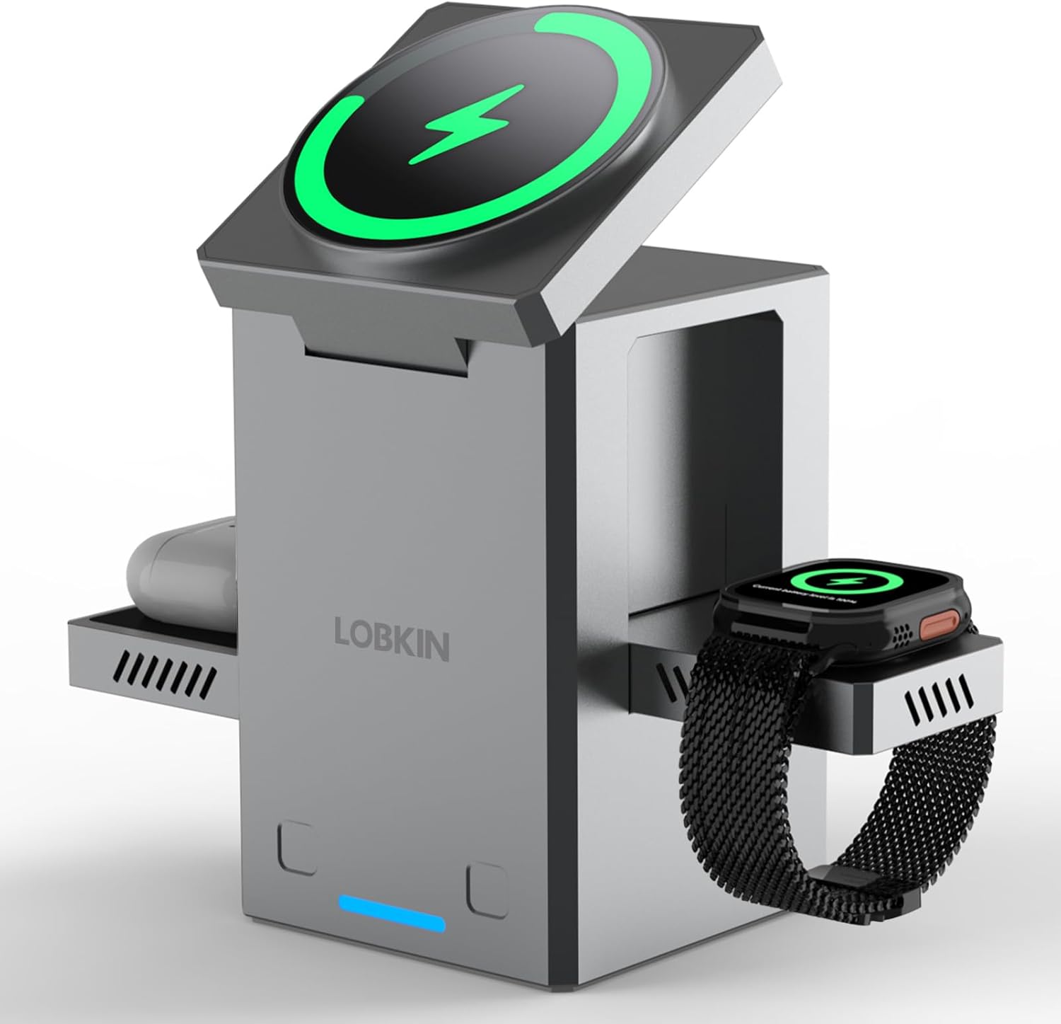 - Qi2 15W Wireless Fast Charging: LOBKIN Qi2-certified 3 in 1 charging station delivers up to 15W fast wireless charging for your phone. With smart power distribution and built-in protection against overheating, overcurrent, and short circuits, it ensures safe, efficient, and reliable charging for all your Qi-enabled devices.