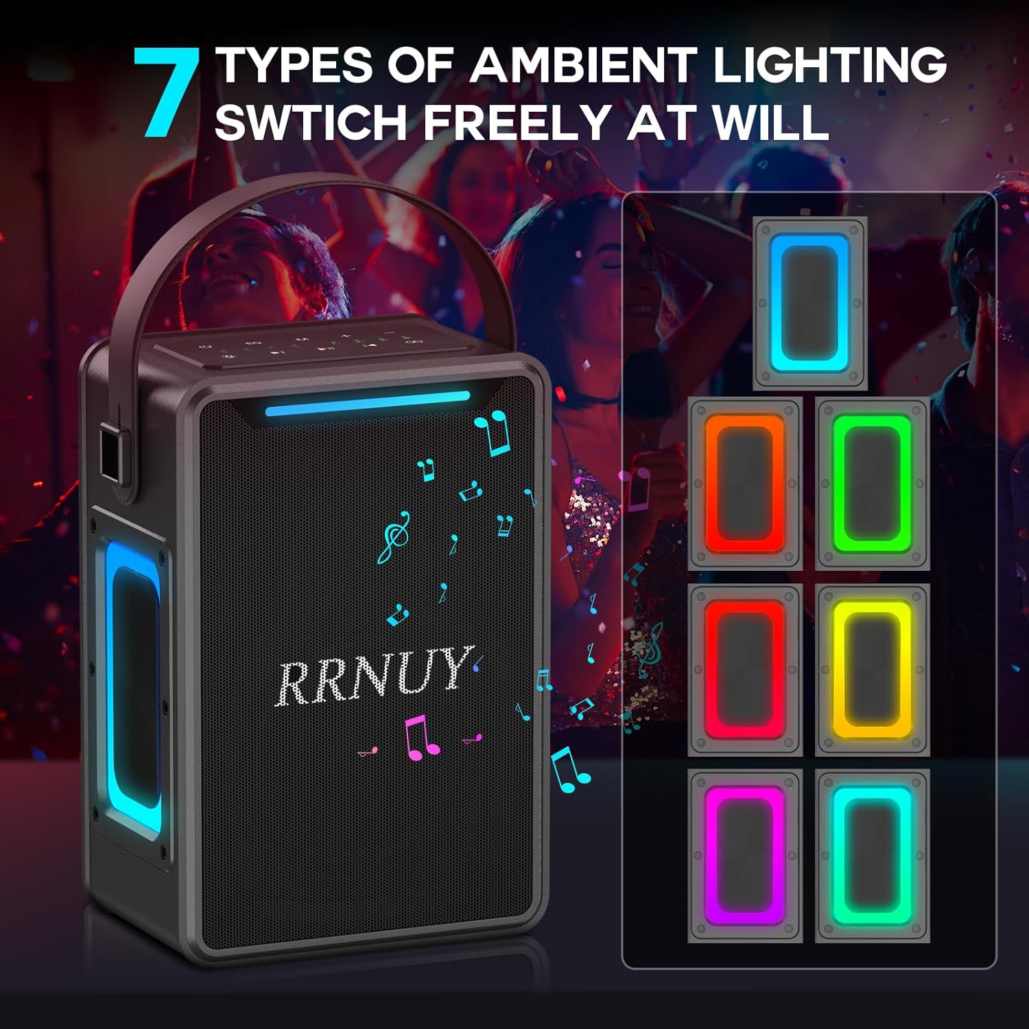 - ♫ 【Bluetooth speaker with LED Lights】 The B66 party speaker is designed with multiple dynamic light modes to light up every corner of the party space, and The LED lights can change the lighting effect according to the rhythm of music, can give your home party, beach, camping or outdoor travel an exciting atmospher. You can easily turn on and off the LED lights with click LED control button.