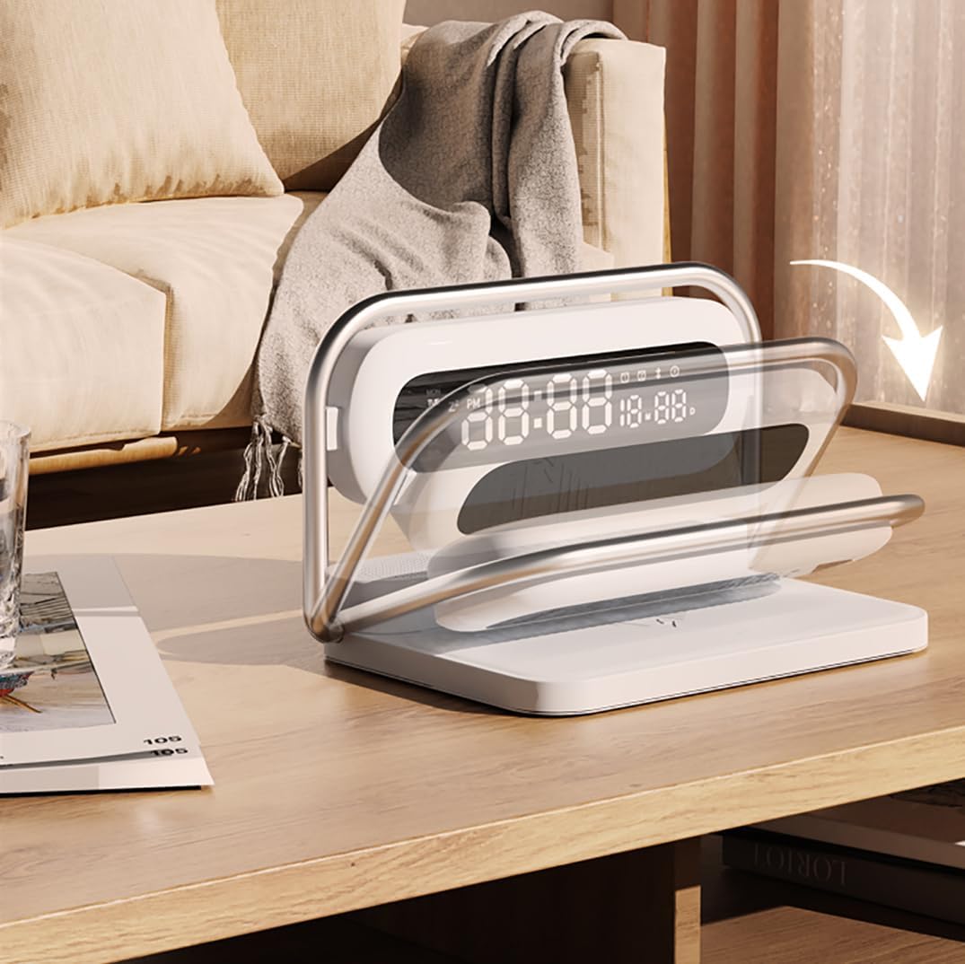 4-in-1 Multifunction Mobile Wireless Charger with Colorful Night Lights, Bluetooth Speaker, Digital Clock Alarm ; M11