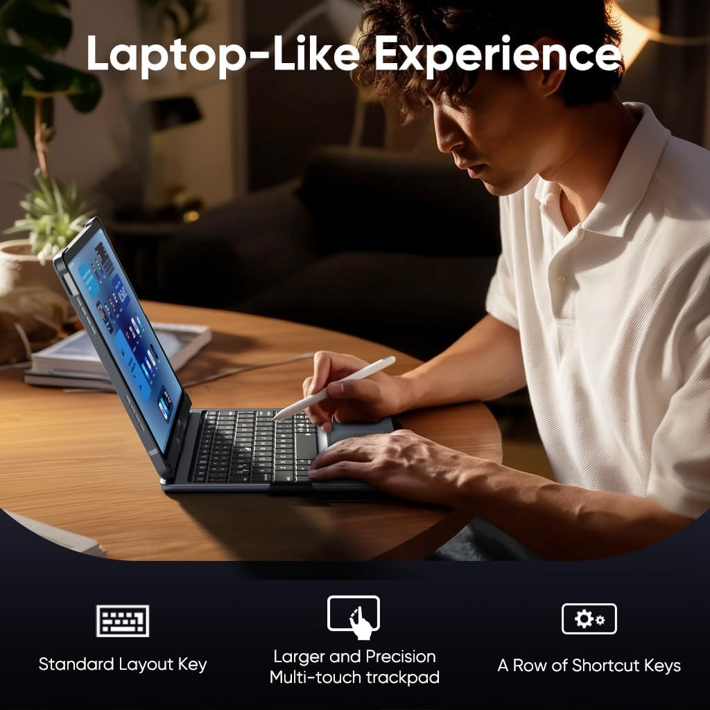 - Precision Trackpad - With self-developed trackpad chip, iPad Air 11 inch 2024 Keyboard Case has a full-area high-precision as well as high-sensitivity trackpad that supports multi-touch gestures. Edit documents, browse the web and create presentations with unrivaled speed, adding more help to your efficient work