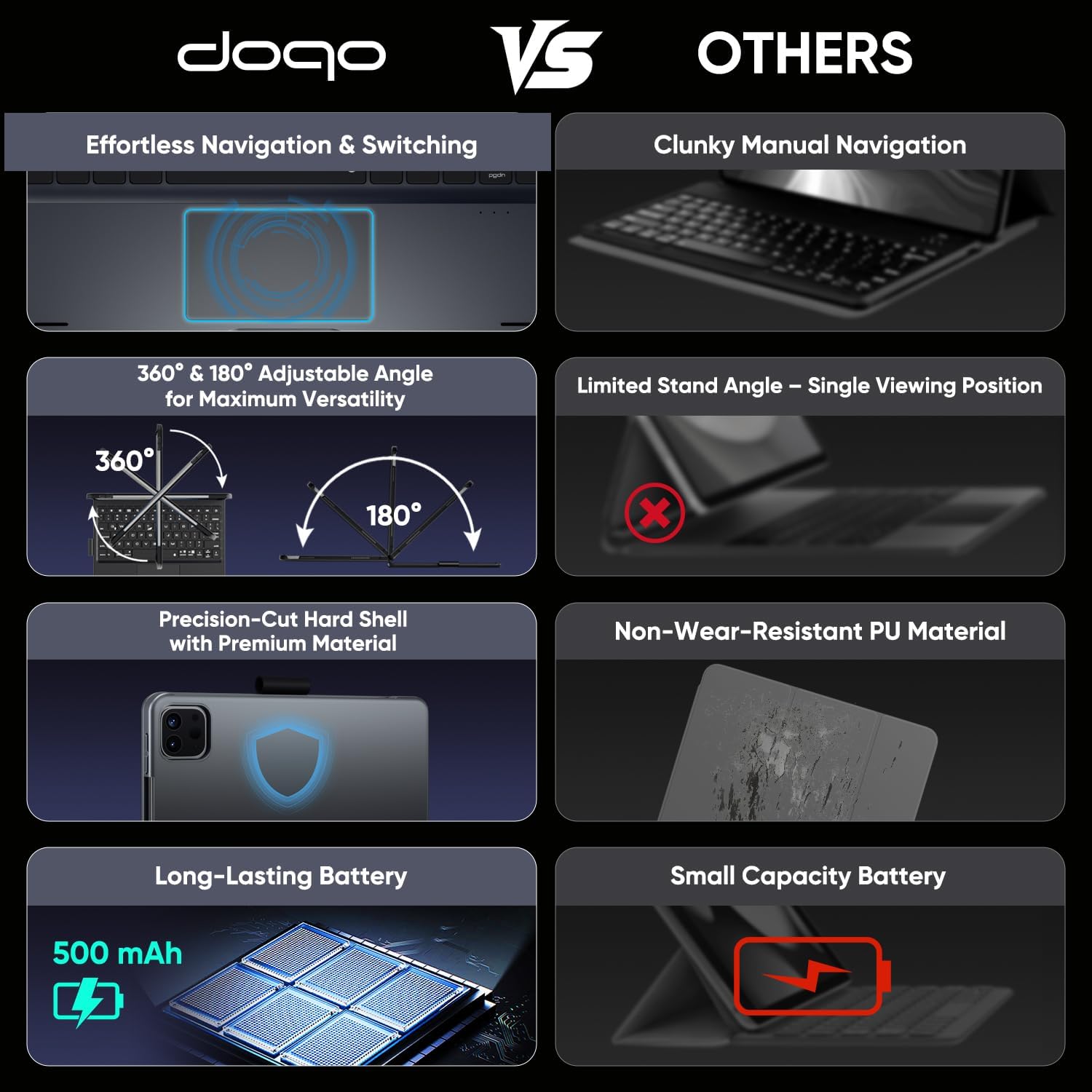 - 1 Year Replacement-Replacement is offered within 1 year by doqo iPad keyboard case. We provide unlimited customer service support and tech support. Questions will be responded to within 24 working hours