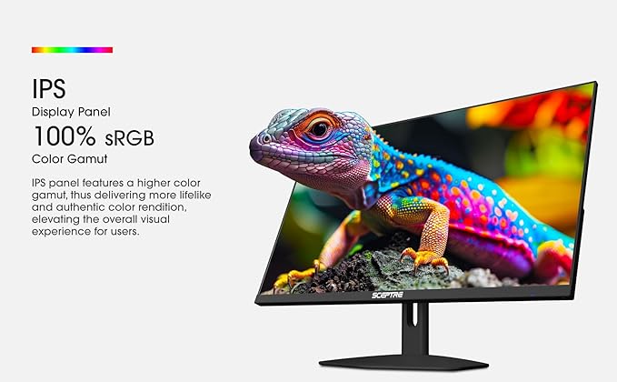 - IPS panel & Color gamut 【TRUE TO LIFE COLORS】 Immerse yourself in breathtaking visuals courtesy of an IPS panel, delivering vibrant, true-to-life colors that faithfully render your software's intended visuals. Elevating your visual fidelity and widening your viewing angles an IPS panel with 100% sRGB color gamut gives users stunning visuals and a comfortable viewing angle.