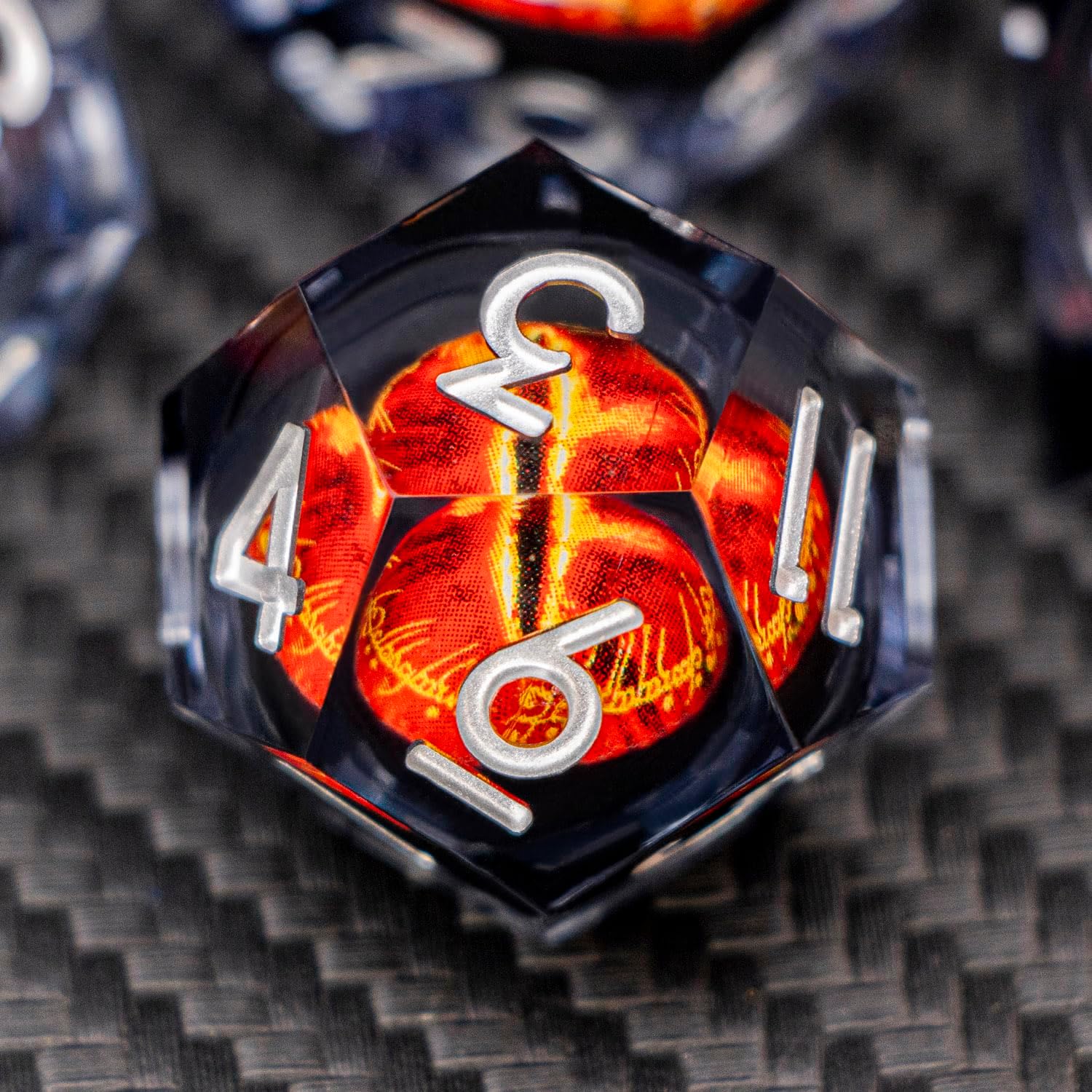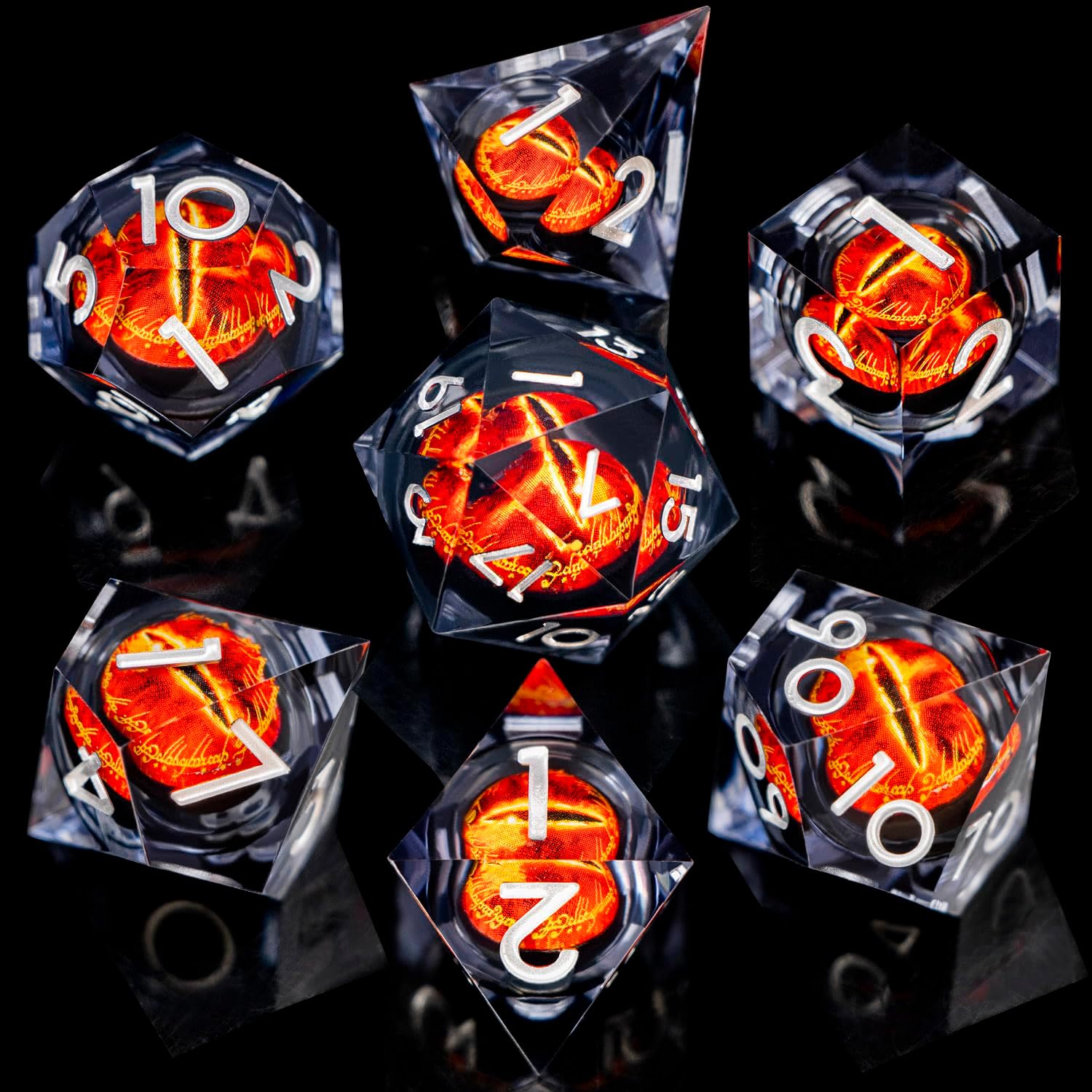 ARUOHHA DND Resin Dice Gazes Eye Dice Liquid Core Flaming RPG Sharp Edged Dice Set with Gift Box, Polyhedral D and D Dice Set Compatible with Dungeons Dragons Role Playing Game D20 D12 D10 D8 D6