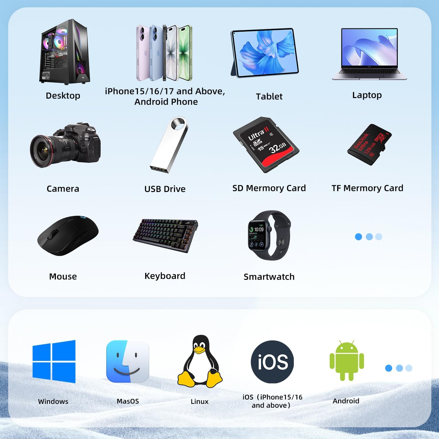 - 【Ultra-Slim & Portable, Broad Compatibility】 Weighing just 0.37 lbs (approx. 168g), it's as slim as a business card holder and easily fits in your pocket or bag. Fully compatible with Windows, macOS, Linux, Android, and iOS systems, it works plug-and-play on desktops, laptops, smartphones, smart TVs, and even gaming consoles—no driver installation required.