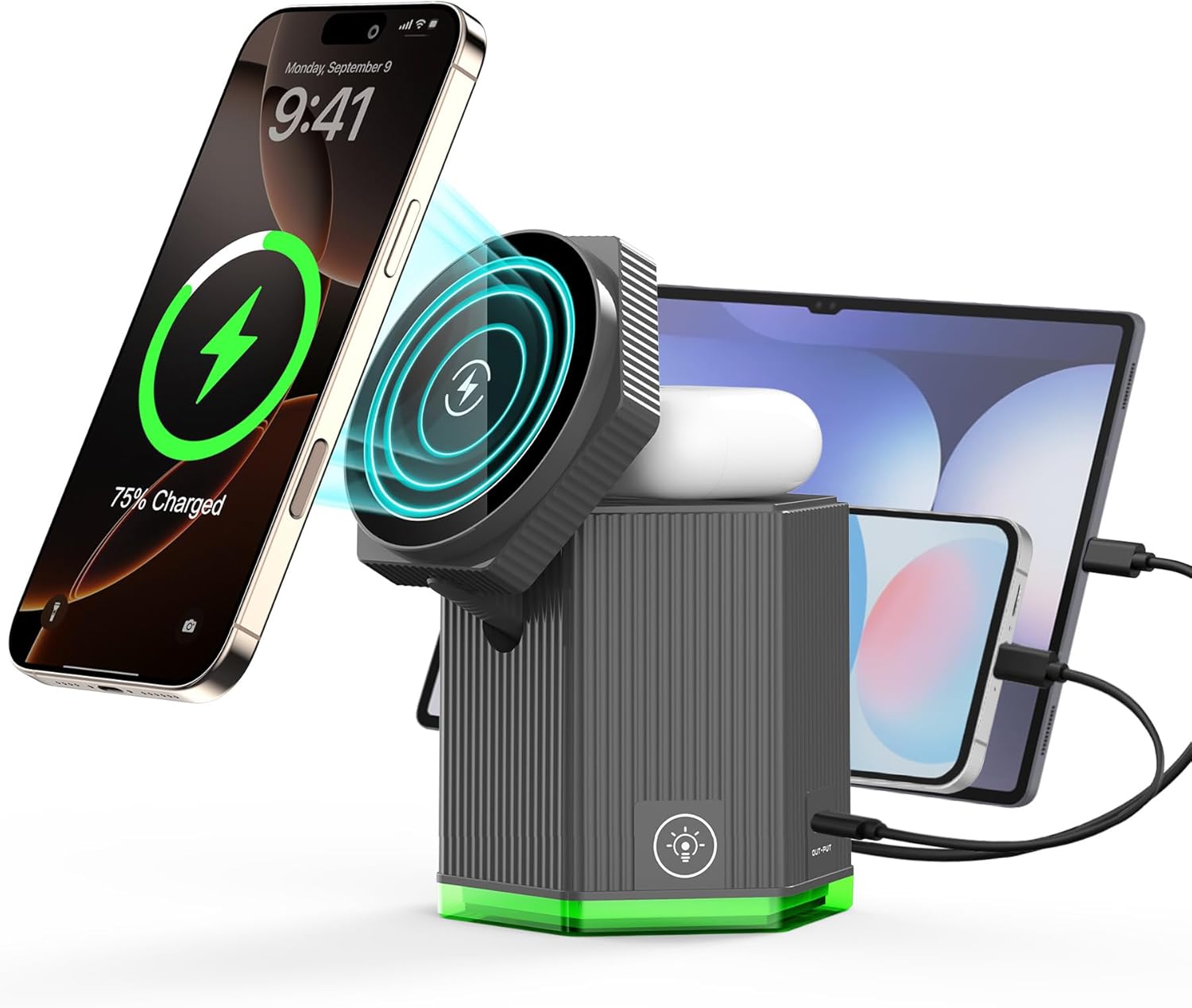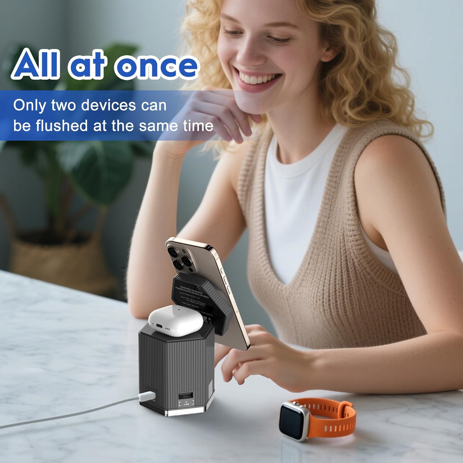 - Upgraded 5-in-1 Wireless Charger๏ผ The wireless charger for iPhone is the perfect addition to any desk or nightstand. It allows you to charge multiple devices simultaneously, Designed specifically for iPhone 16e/16/15/14/13/12/11/XS/XR/XS Max/X/8Plus series, iWatch 10/9/8/7/SE/6/5/4/3/2 series, AirPods Pro 4/3/2/1, iPad series and devices with Type-C port and USB port