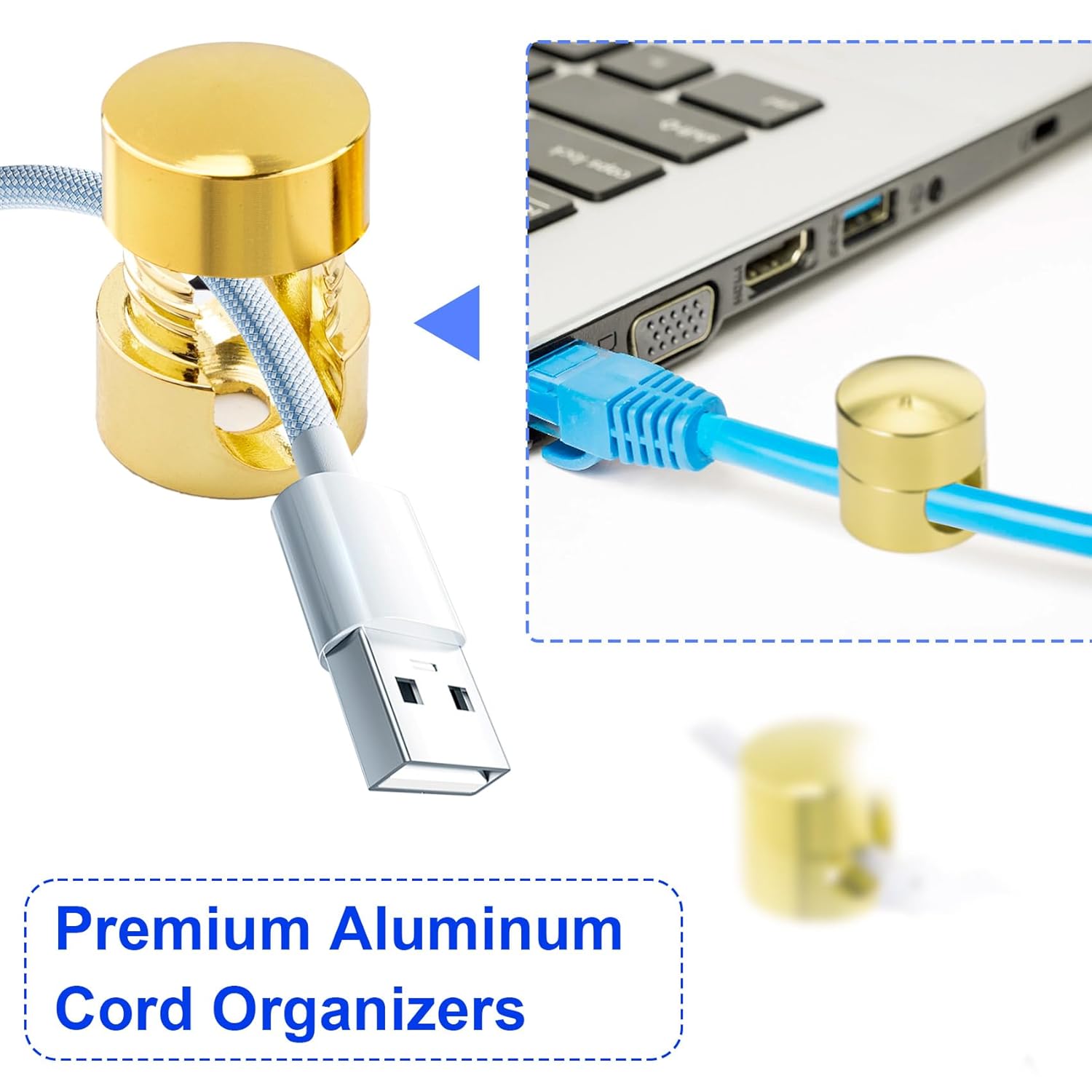 - Easy to Use: The package includes 1 stickers for using. You just need to clean the surface that you are going to attach the cord anchor to, then stick the gold cord holder on the surface with glue stickers, and thread the cable from the hole to keep it organized