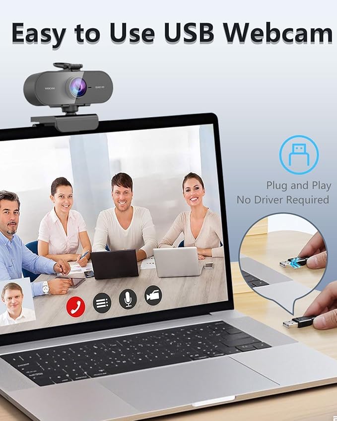 2K Webcam for pc with Microphone,Privacy Cover Slider Streaming Web cam for Mac Laptop,USB External Computer Camera for Desktop,Best Full Hd face cam for Video Conference,Gaming,Zoom,Teams