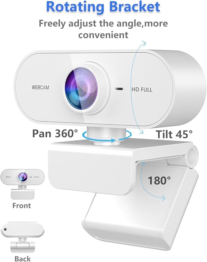 Webcam for pc with Microphone,Full HD 1080P White Streaming Web Cam for Mac Laptop, Mini USB C External Clip Computer Camera for Desktop,Cheap Facecam for Video Conference,Gaming Skype Meeting