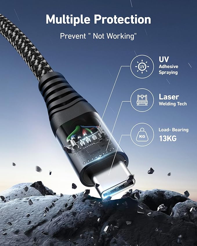 - 【Super Durable iPhone 17/16/15 USB C Cable】Our USB-C fire wire is made from high-quality materials and manufactured using state-of-the-art processes, and has undergone rigorous quality testing. This nylon braided USB to USBC cable features a nylon braided design that effectively prevents cable tangling (also suitable for use in cars). Made from high-strength fibre material, it offers excellent flexibility, strength, and durability, capable of withstanding over 40,000 bend tests. It can handle daily connection needs and supports long-term use.
