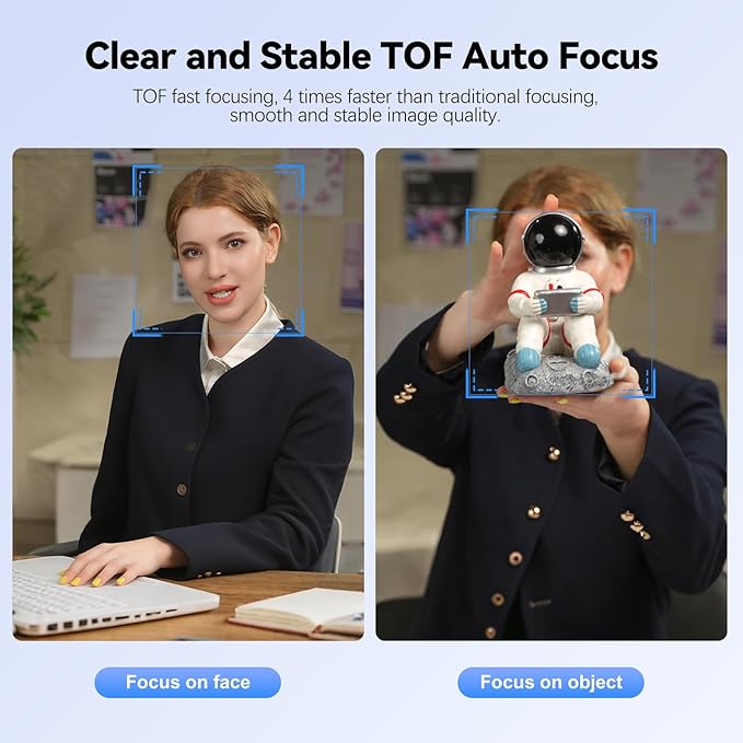 - 【TOF AF & 92° Wide Angle】The 873 computer camera is equipped with TOF AF technology, which can focus 4 times faster than normal AF, so that it can focus clearly and stably in business meetings, educational lectures and other scenarios, saying goodbye to blurring. 92° wide-angle high-definition shooting is suitable for presentations.