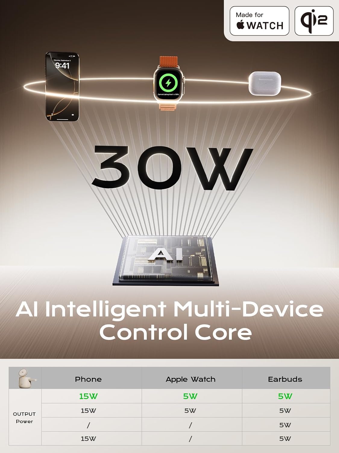 - đăAdvanced AI Intelligent Chips Control CoreăPowered by 5 exclusive TK-AI Chips, this qi2 3 in 1 magsafe charger ensure exceptional safety, efficiency and thermal management. The AI chips inside optimizes power delivery to provide comprehensive 360° protection against overheating, overvoltage, overcurrent, overcharge and short-circuit, safeguarding your device's longevity and potentially extending battery life.