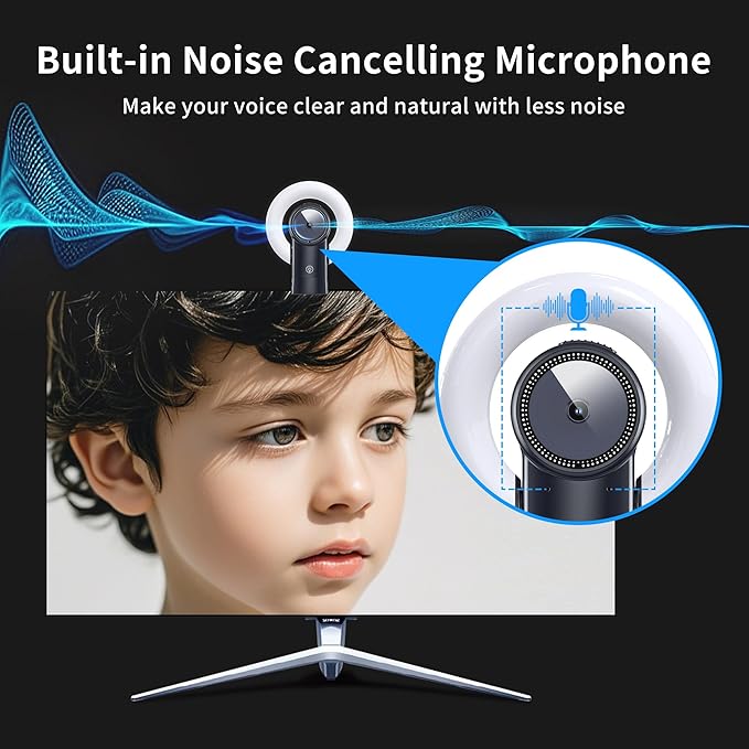 - WEBCAM 4K WITH SPEAKER & DUAL NOISE REDUCTION: this computer camera for desktop with Speaker will amplify the voice of the person speaking across the room, you don't need to bring headphones or sit in front of the webcam for pc all the time, you will be able to hear it when you are moving around. Also. This webcam 4k for pc also comes with a microphone with double noise cancellation to ensure clear audio even in cluttered environments. A great choice for your video conference/calls!