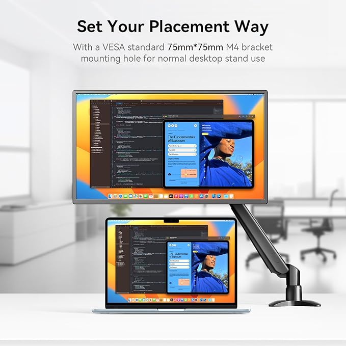 - 【DIY Using Way】Create your ideal viewing angle with ergonomic flexibility. A detachable magnetic stand offers height adjustment (sit-stand friendly) and 90° rotation for portrait mode coding or reading. The 75x75mm VESA compatibility allows for wall or arm mounting, letting you place this monitor portable on pegboards to build a personalized workspace.