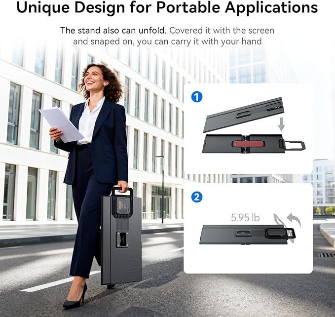 - 【Portability Meets Performance】The 24-inch screen size offers ample display space while maintaining portability.At the same time, the detachable bracket can be used as a portable protective case to provide protection for large portable monitor. And it also supports reverse charging. This means you can easily use it in various environments, whether it's your office、 home or travel. You'll enjoy high-quality visuals wherever you go.