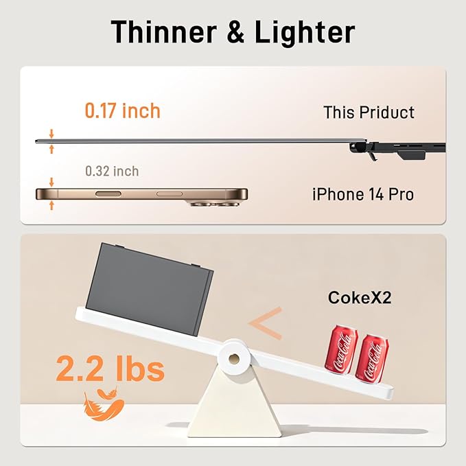 - 【UPGRADED STABLE & ADJUSTABLE STAND】Experience rock-solid support with zero wobble, thanks to our laptop monitor extender's built-in, widened aluminum stand featuring multi-level height adjustment. Perfectly compatible with 13-17 inch laptops, this portable screen for laptop also rotates 180° horizontally, allowing you to find the ideal viewing angle and effortlessly share your screen. A highly versatile monitor extension for laptop that combines stability, flexibility, and universal compatibility.