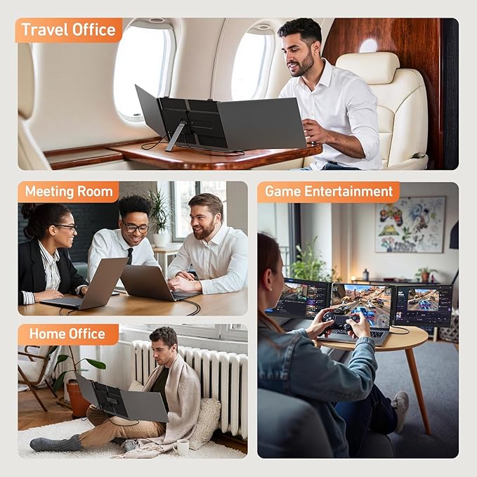 - 【TRIPLE YOUR PRODUCTIVITY】Dramatically increase your efficiency by up to 300% with this multi screen laptop attachment. The extra screen for laptop supports extended, mirrored, and portrait modes, allowing you to multitask seamlessly across different applications without switching windows. This 3 screen monitor for laptop is ideal for remote workers, traders, and content creators.