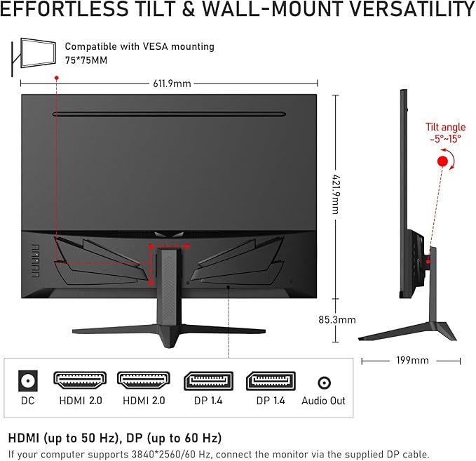 - Easy Multi-Device Connectivity: Connect up to four devices at once with two HDMI 2.0 and two DP 1.4 ports. Switch seamlessly between PCs, gaming consoles, or streaming devices without constant cable swapping. For the best experience with the native 3840x2560 resolution at 60Hz, a DisplayPort connection is required. Using HDMI may result in a different output behavior to accommodate the screen's unique format.
