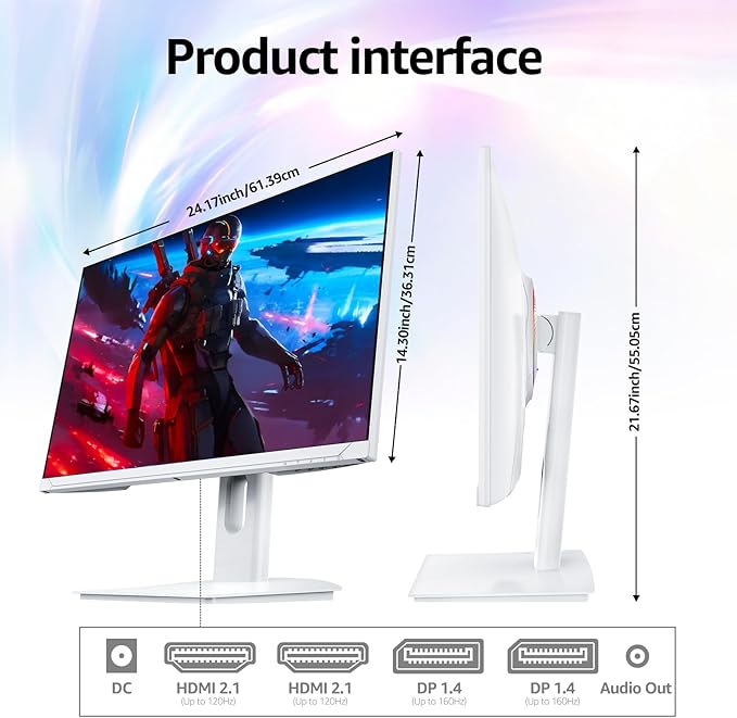 - Interfaces for Connection:It is equipped with a variety of interfaces, including DP1.4×2, HDMI2.1×2,Audio out*1 Connecting various peripheral devices becomes extremely easy. Through the convenient connection method, not only can the setup process be simplified, but also work efficiency can be significantly improved, ensuring a seamless work process. Whether for work or entertainment, it can easily handle various situations.
