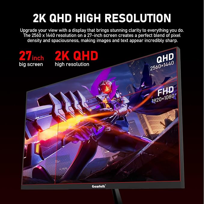 Gawfolk 27 Inch Gaming Monitor QHD (2560x1440), 260Hz, IPS Panel, 1ms Response Time, G-Sync & Freesync Compatible,Wall Mount Compatible 75 * 75mm,Black