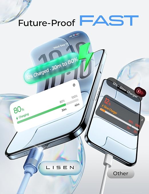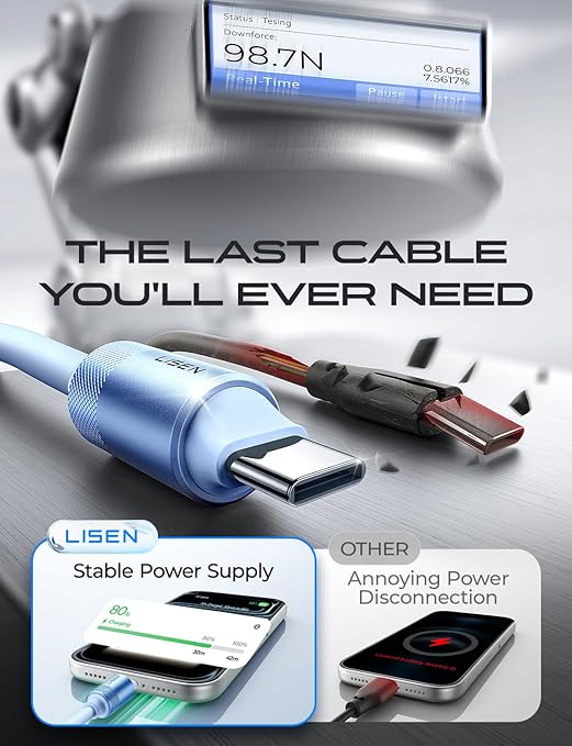 - [What You Get] LISEN 100W iphone 17 air charging cable 10ft, silicone hook and loop cable tie, lifetime warranty, and friendly customer service - issues resolved within 24 hours.