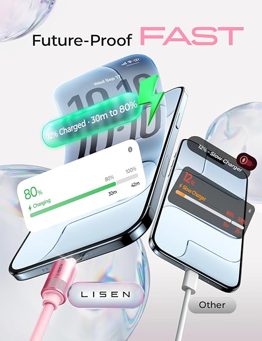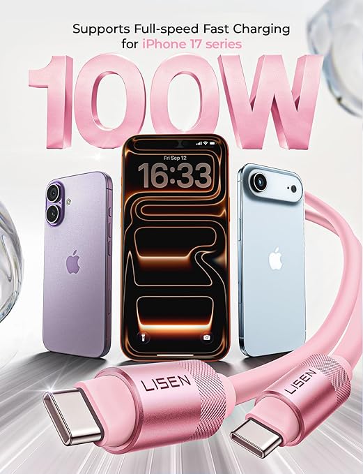 - [What You Get] LISEN 100W iphone 17 air charging cable 10ft, silicone hook and loop cable tie, lifetime warranty, and friendly customer service - issues resolved within 24 hours.