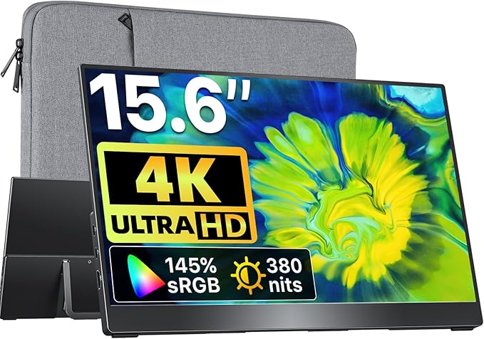 VisionOwl Portable Monitor 15.6 Inch 4K UHD 145% sRGB Second Screen, USB-C HDMI HDR FreeSync Travel Monitor for Laptop MacBook PC PS5 Xbox, VESA Mountable, with Speakers, Adjustable Kickstand