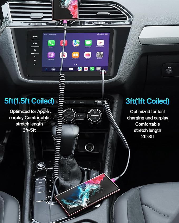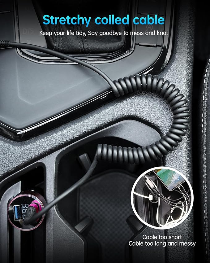 - Elastic Coiled USB C Cable Made for Car: The USB Type-C cable is designed with stretchable, no tangle, no knot, and does not take up space. This coiled USB C charging cable is made of upgraded high quality PU material, which is flexible, easy to stretch, effortless, quick to rebound and not easily deformed.