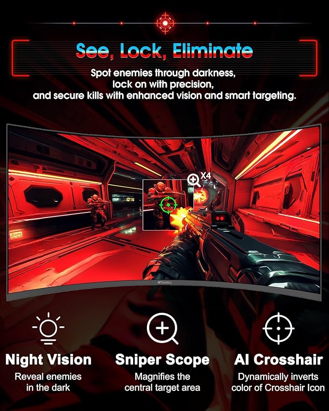 - Optimized Performance: Up to 200Hz Refresh Rate | HDMI 2.1FRL (Support VRR) | Fast VA panel | AI Blue light reduction | AI Crosshair | AI PQ(Picture quality) | Sniper Scope.