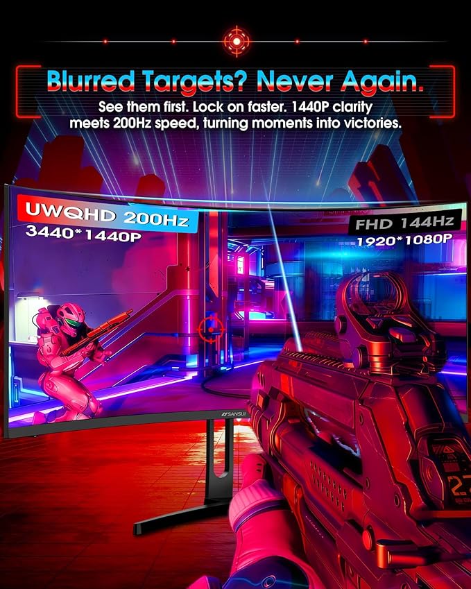 - 34-inch Curved 1500R UWQHD(3440 x 1440P) @ 200Hz Fast VA Ultrawide 21:9 Gaming Monitor with AI Tech for Gaming Assistance.
