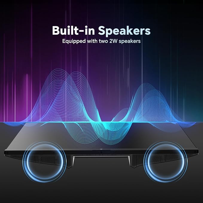 - [Built-in Speakers] Featuring two 2W integrated speakers delivering crisp audio performance, eliminating the need for external sound systems during gaming, video viewing or video calls. This setup reduces cable clutter and saves valuable desk space.