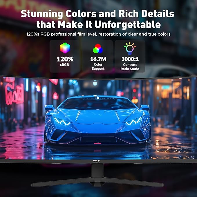 ZZA 49 Inch Ultrawide Curved Gaming Monitor, 120Hz, DQHD 5120x1440P, 1500R, Ultra-Wide 32:9 Screen, 1ms MPRT, HDR, FreeSync G-Sync Compatible, VESA Compatible, Height/Tilt Adjustable